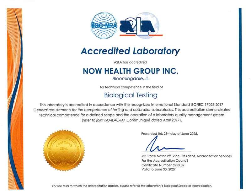 NOW®, the largest independent and family-owned manufacturer of natural products, is proud to announce that NOW’s in-house laboratories have successfully expanded the scope of its ISO 17025 accreditation by the American Association for Laboratory Accreditation(A2LA)in both the chemical and biological fields. The accreditation process involved a thorough assessment and review of the lab’s quality management system and competence.