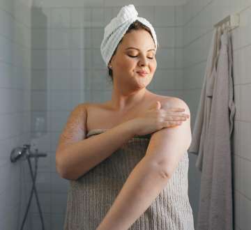 One of the best ways to keep the skin on your body hydrated is to lock in the moisture from your shower. Instead of drying completely, allow your skin to remain slightly damp and apply a body oil within the first few minutes of finishing your shower. Look for nourishing oils like avocado oil, castor oil, or arnica oil.