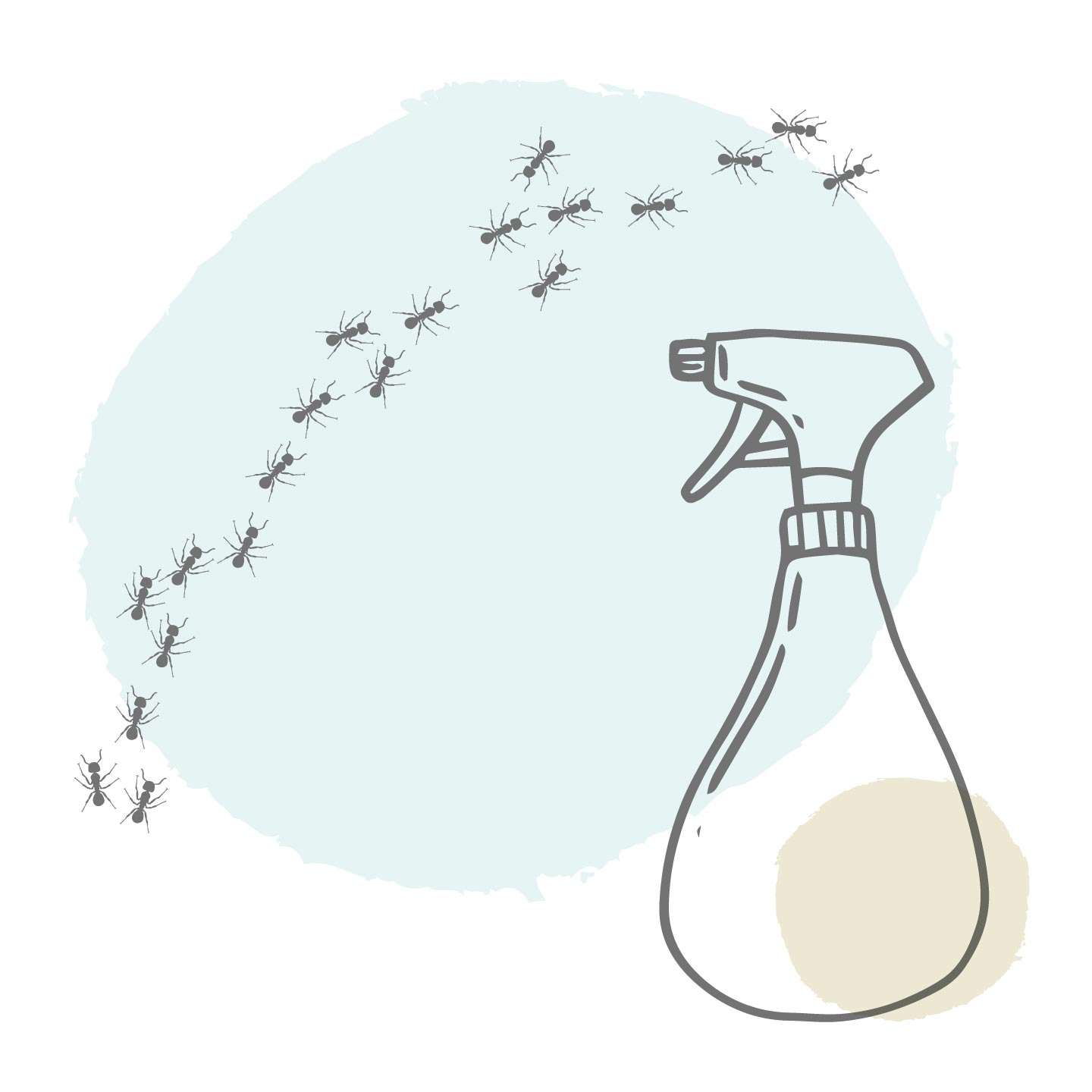 Add a few drops of unscented dish soap to water in a spray bottle along with your favorite essential oils.