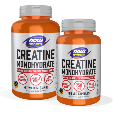 Choose NOW® Sports high-quality, tested, and trusted Creatine Monohydrate (Capsules, Powder) and start seeing the difference in your performance today!