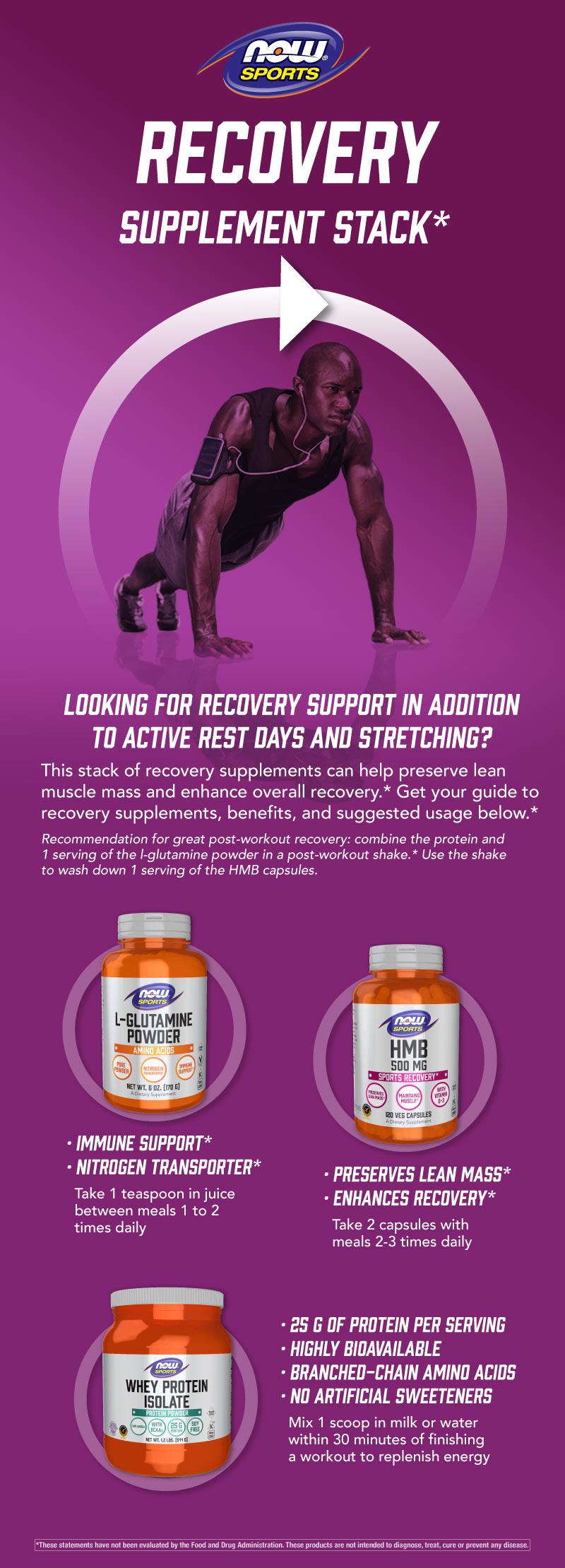 Recommendation for great post-workout recovery: combine the protein and one serving of the l-glutamine powder in a post-workout shake.* Use the shake to wash down one serving of the HMB capsules.