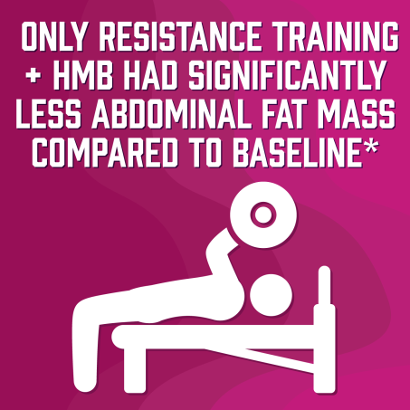 Only resistance training + HMB had significantly less abdominal fat mass compared to baseline*