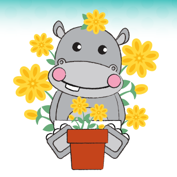 cartoon hippo with yellow flowers