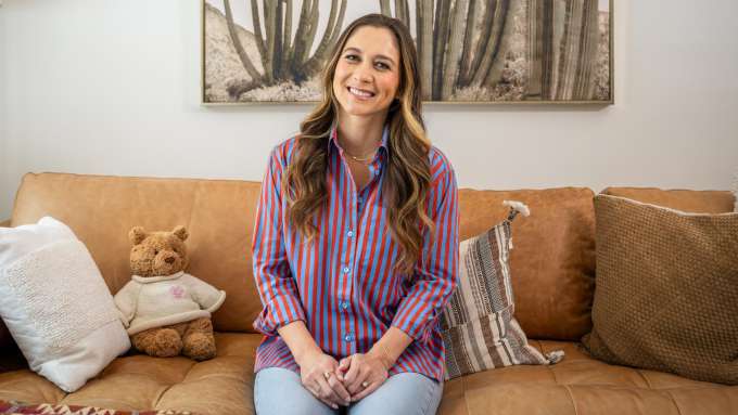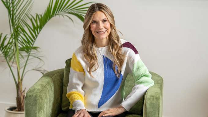 Dawn Jackson Blatner in her kitchen smiling at camera
