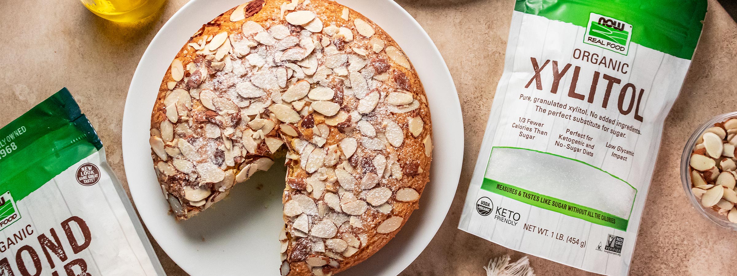 Indulge in the delightful flavors of our Almond Coconut Cake, a perfect blend of nutty and sweet for any occasion. This delicious cake is made with NOW Real Food® Organic Almond Flour and Unsweetened Coconut Shreds, sweetened naturally with Organic Xylitol, and infused with a hint of almond extract for a rich, aromatic experience. Topped with sliced raw almonds and a light dusting of powdered erythritol, this yummy treat is both easy to make and irresistibly tasty, making it a great choice for health-conscious dessert lovers.