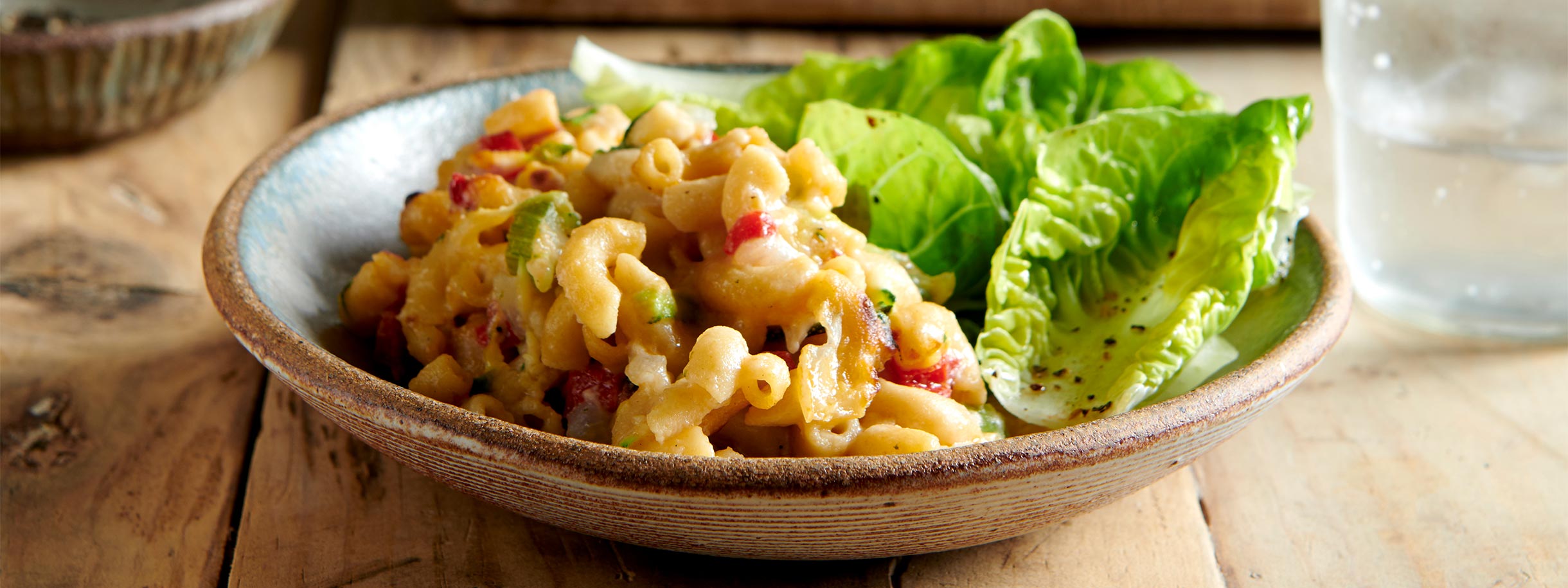 This mac and cheese will make you swoon, and it even incorporates a classic baking technique. Whether you call it a macaroni pie or mac and cheese, this recipe is loaded with vegetables. Creamy and delicious, it can be enjoyed with a large plate of leafy greens on the side.