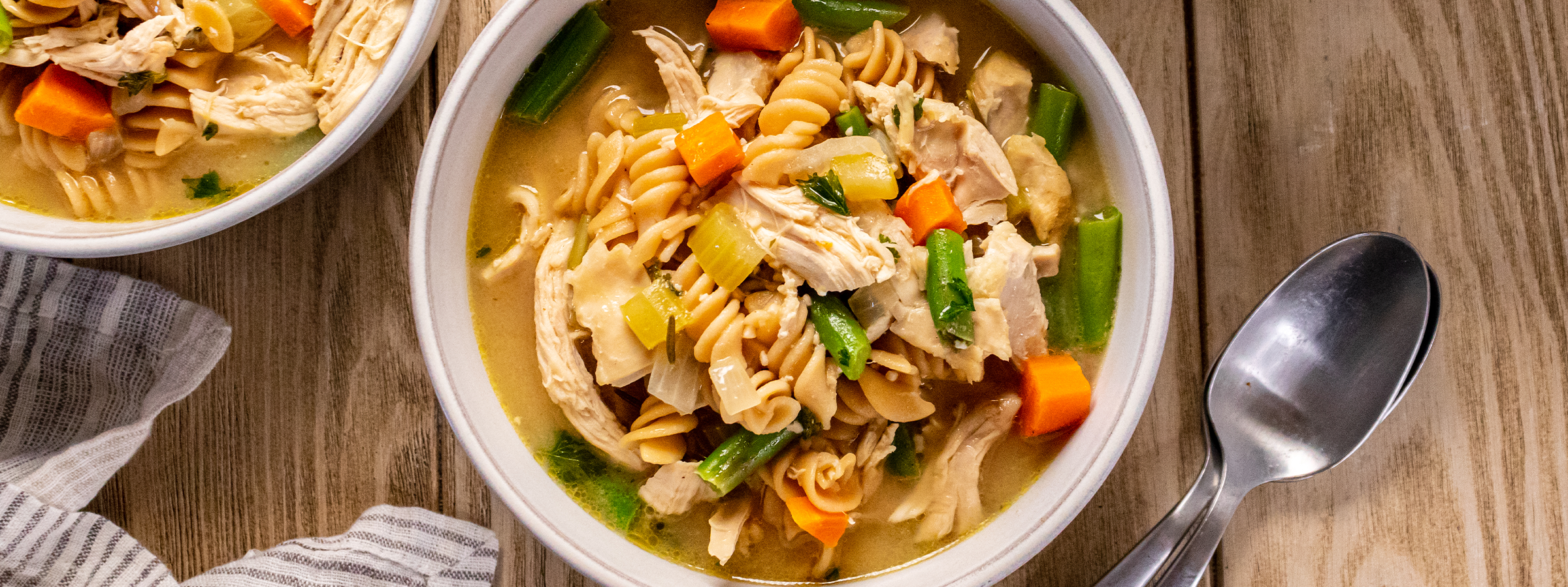 Savor the comfort of homemade chicken noodle soup with this nourishing blend of wholesome ingredients and flavors! This dairy- and gluten-free recipe features Ellyndale™ Organic Extra Virgin Olive Oil, Living NOW® Organic Multigrain and Cauliflower Rotini, and a medley of fresh vegetables, making it an ideal choice for organic-conscious cooks. Ready in just over an hour, this heartwarming noodle soup, packed with tender chicken, aromatic herbs, and vibrant veggies, is a perfect meal to enjoy any day of the week.
