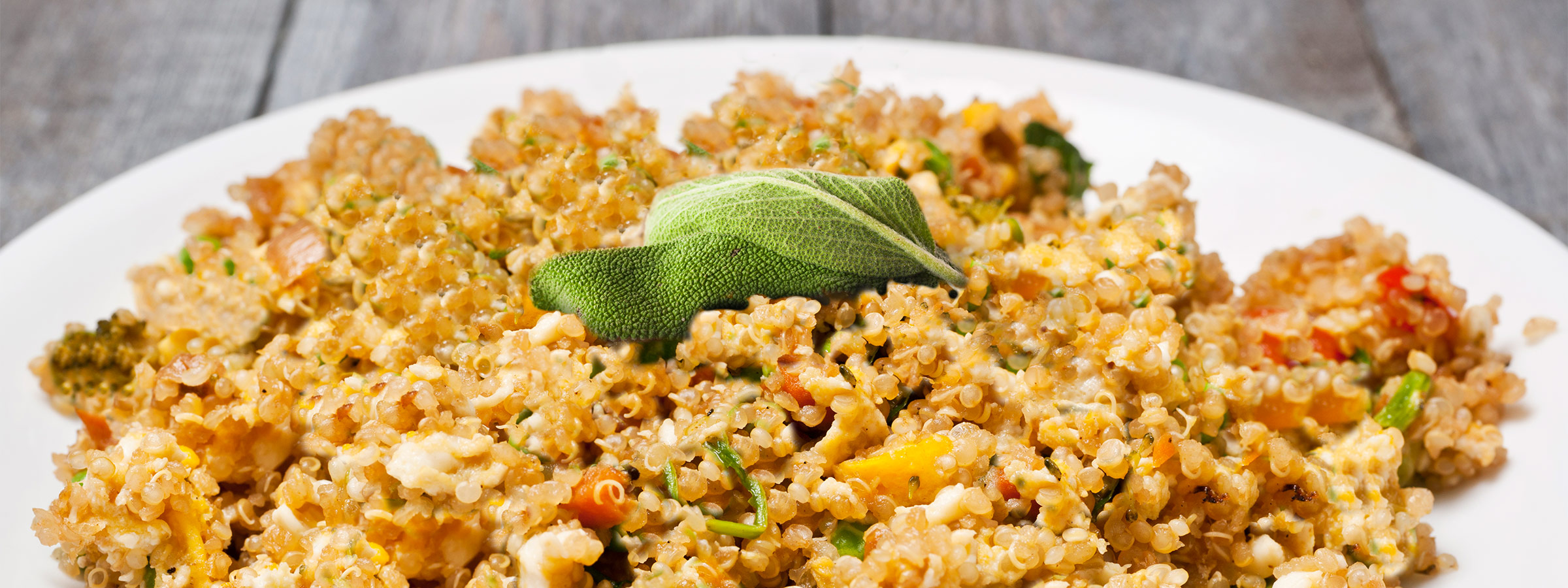 In this holiday recipe heart-healthy quinoa combines with turkey sausage, ginger and greens to create a fantastic gluten-free stuffing that also makes a convenient and satisfying one-dish supper.