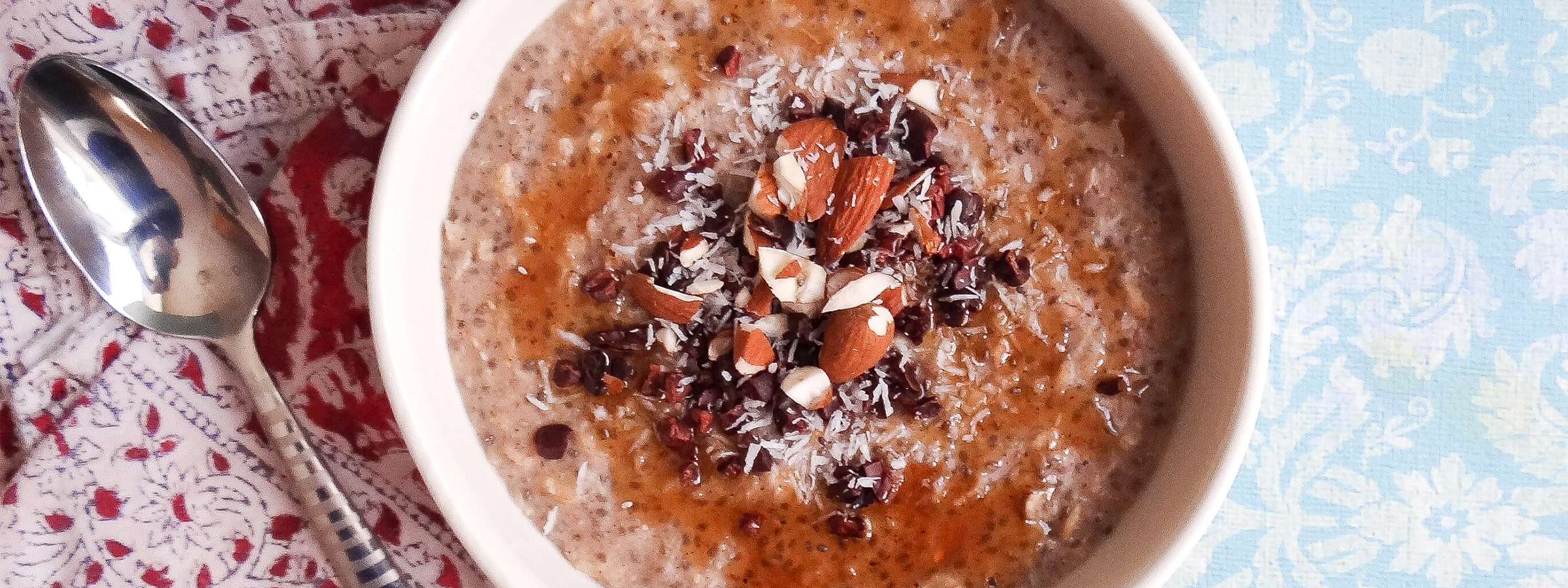 A warming bowl of naturally sweet oatmeal filled with wholesome goodness is just perfect for a slow Sunday morning breakfast. This recipe from our friend at Sunday Morning Banana Pancakes uses a whole bunch of delicious NOW Real Food® products including Date Sugar, Organic Chia Seeds, Organic Shredded Coconut, Cacao Nibs, and Raw Almonds. It’s loaded with nutritious treats, so whip a bowl up for yourself or invite family and friends to indulge in this yummy oatmeal that can’t be beat.