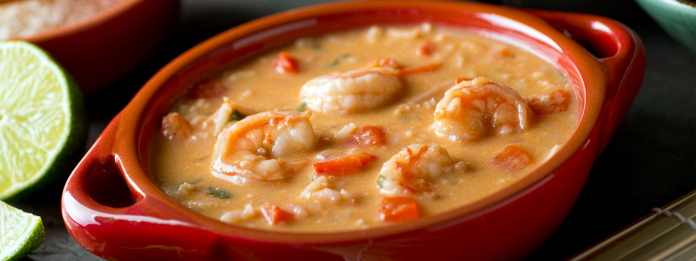 Coconut milk makes the perfect base for a creamy shrimp soup. This recipe combines just the right combination of spices like garlic, ginger, and turmeric for a delectably aromatic soup! Plus, with the coconut milk and monk fruit sweetener, it has just the right amount of sweetness. Serve with a salad for lunch or add fresh bread or rice for a totally satisfying supper.
