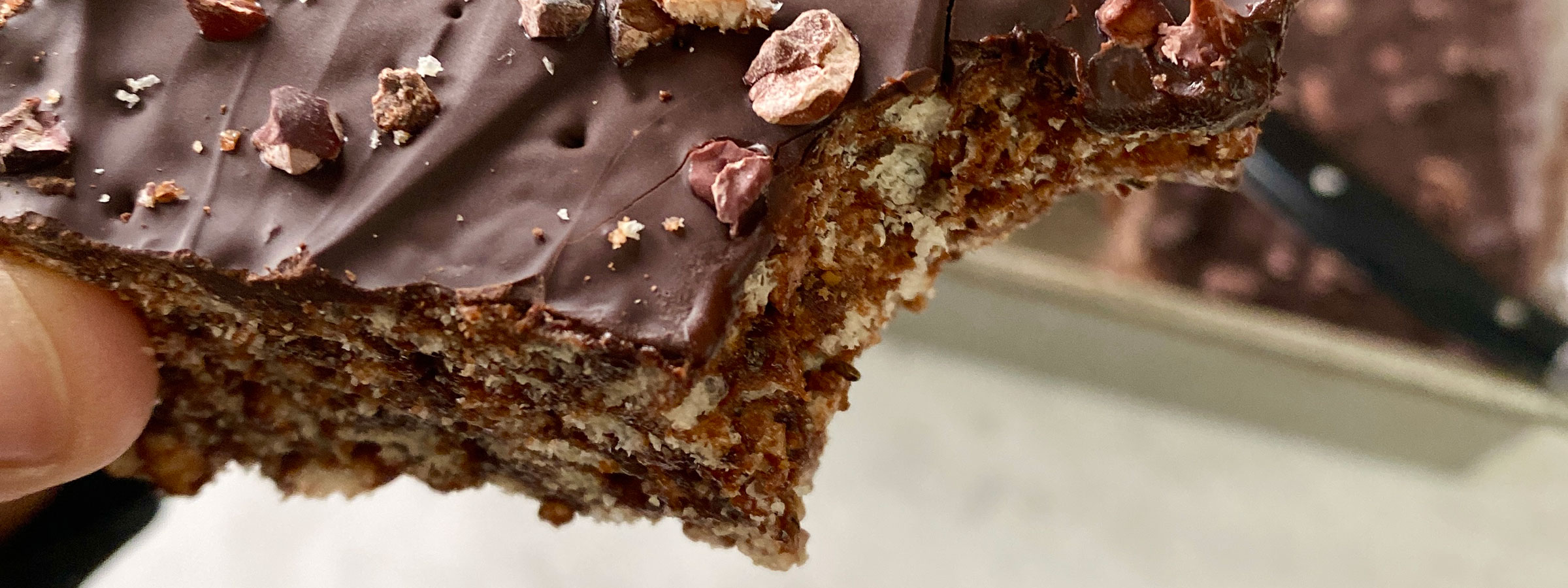 - Next, melt the dark chocolate in a double boiler. Heat the water over medium to high heat and place your chocolate in a heatproof bowl, stirring gently, as it melts. Remove from the heat and pour the melted chocolate onto the pressed cereal. Using a rubber spatula or large metal spoon, spread the chocolate around in an even layer covering the cereal completely. Finally, sprinkle on the cacao nibs and refrigerate until the chocolate is solidified, about 20 minutes or more.