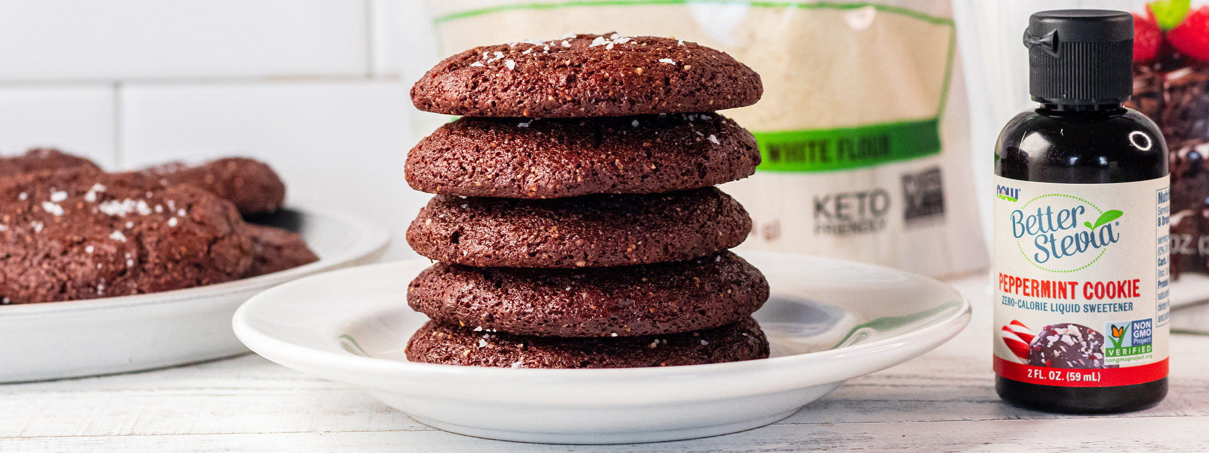 Whether you need a cookie recipe for festive season or are just craving a sweet chocolatey treat, indulge your sweet tooth with our soft and chewy Double Chocolate Peppermint Cookies. These delightful cookies combine the richness of NOW Real Food® Organic Cacao Powder and dark chocolate chips with a refreshing hint of BetterStevia® Peppermint Cookie Liquid, creating a luxurious lower carb, lower sugar treat. Made with NOW Real Food® Organic Almond Flour and Organic Allulose, these cookies are a healthier alternative for those seeking a delectable snack, ideal for holiday gatherings or a cozy night in!
