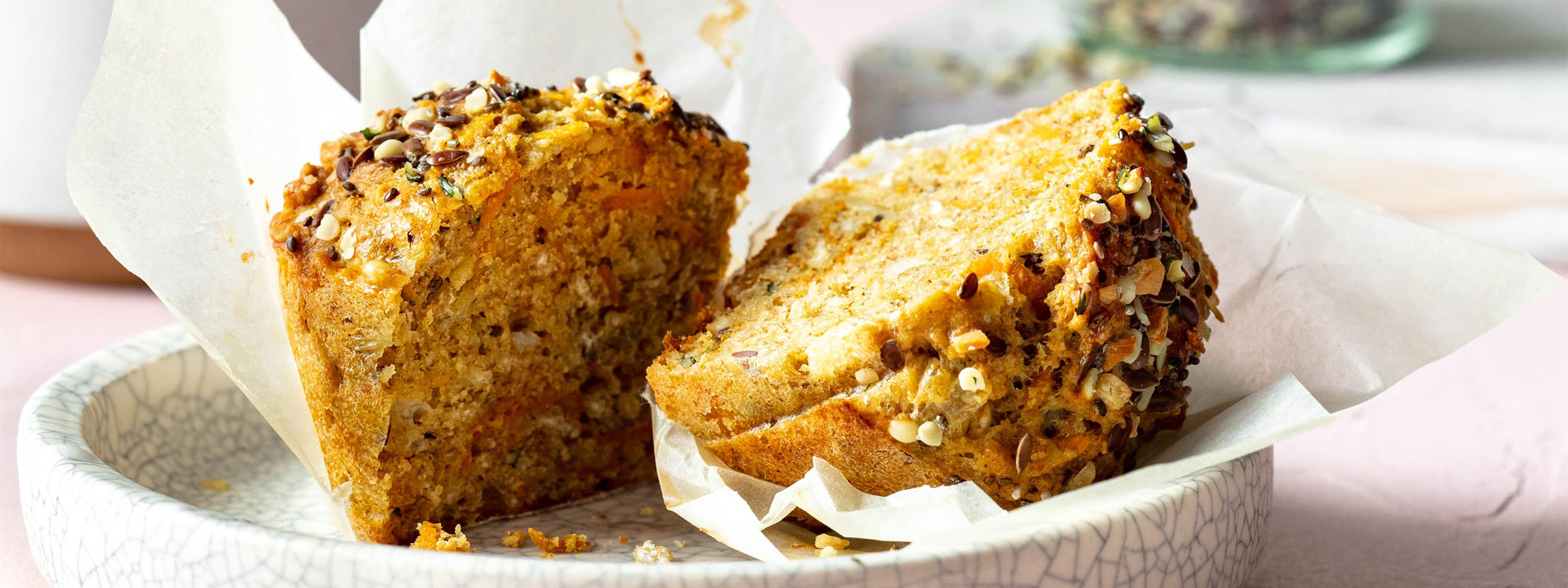 This variation of the Savory Superhero will seriously remind you of salty-oniony-seed-covered Everything Bagels. They have a crave-worthy bread texture with a tinge of sweetness from grated yam, which contrasts perfectly with the seasoned muffin tops (best part!). Slice in half and serve topped with cream cheese or butter, just like you would a bagel. So good!