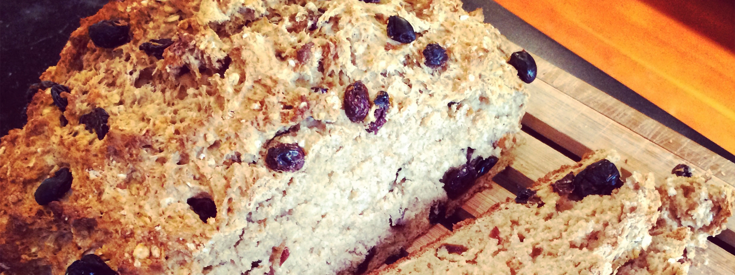 Soda bread is a quick bread, in which baking soda is substituted for traditional yeast. This creates a heavier texture with lots of air pockets thanks to the reaction of baking soda with the lactic acid in buttermilk. This hearty Irish soda bread recipe is loaded with rustic goodness thanks to dried cherries, sunflower seeds, black chia seeds and flax seeds.