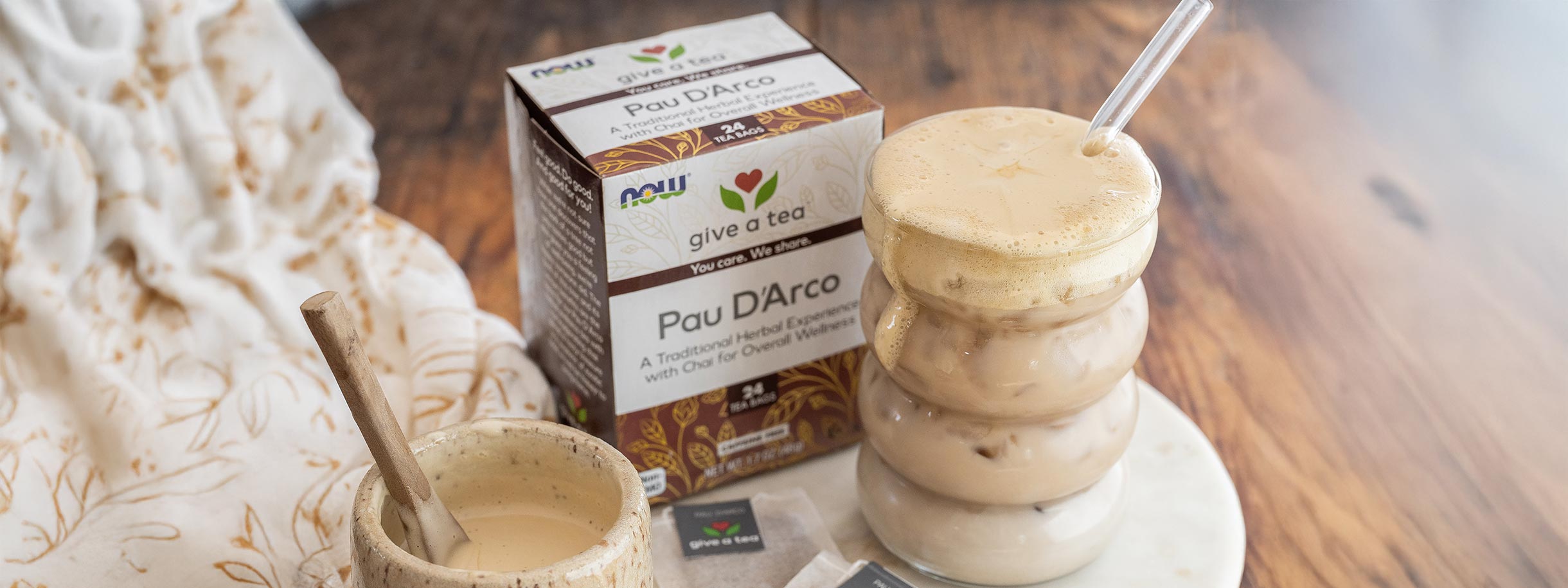 Refresh your palate with the Iced Maple Cream Chai Latte, a unique beverage crafted with care by VegNews. This vegan-friendly delight combines the subtle spicy richness of Pau D'Arco chai tea with the yummy sweetness of NOW Real Food® Organic Maple Syrup, whipped into a light, fluffy cream. Enjoy this chilled concoction with a splash of oat milk and a swirl of luxurious maple cream for a perfect, indulgent treat any time of day.