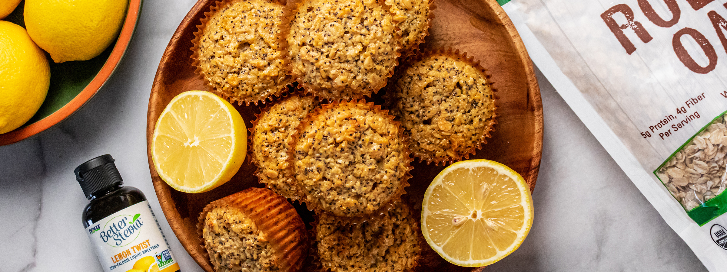 Brighten up your mornings with our Lemon Poppy Seed Oat Muffins! These wholesome muffins are made with rolled oats and sweetened with allulose, creating a healthy yet delicious treat that's perfectly flavored with a burst of fresh lemon juice and Lemon Twist BetterStevia™. Ideal for a nutritious breakfast or a midday snack, these muffins offer a satisfying texture with poppy seeds and a hint of vanilla. Meal prep these muffins for a delightful, guilt-free addition to your day!