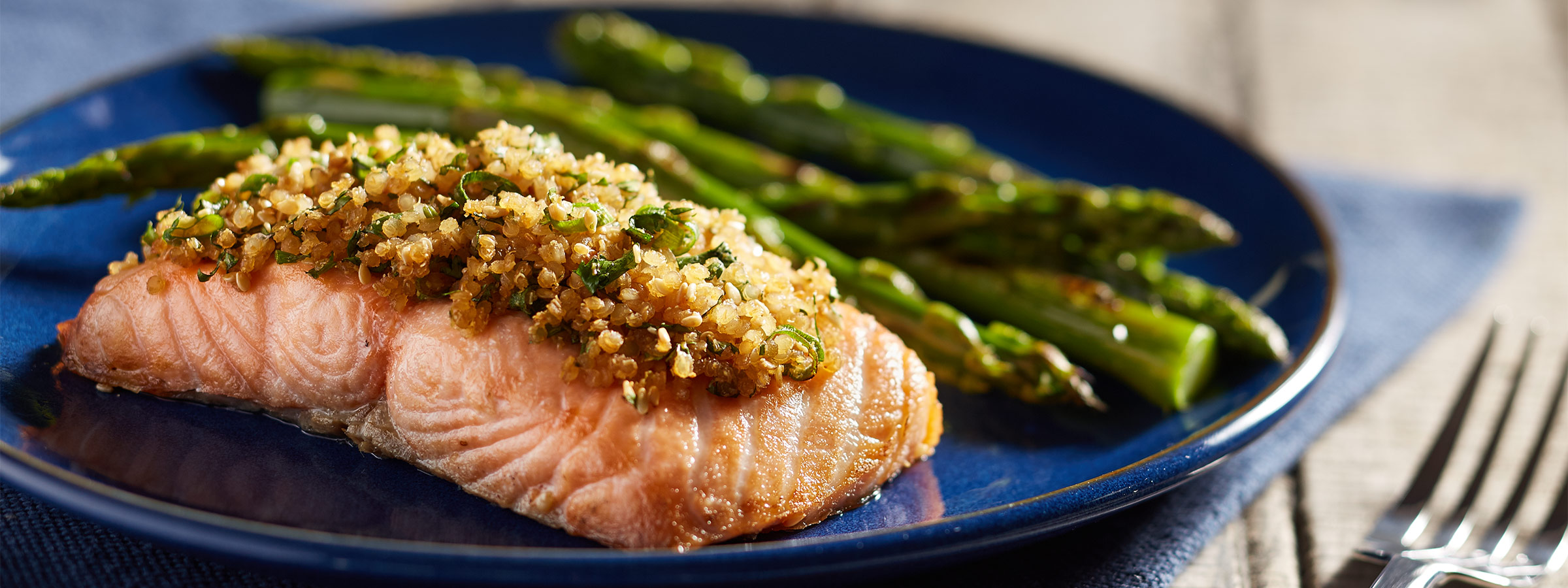 This Asian-inspired salmon dish is high in fiber, protein, and flavor! Tonight’s grain comes from our Gluten Free Living NOW Organic Quinoa and we’re bringing some serious extra flavor with Manuka Honey. cilantro, scallions and sesame seeds add the finishing touch.