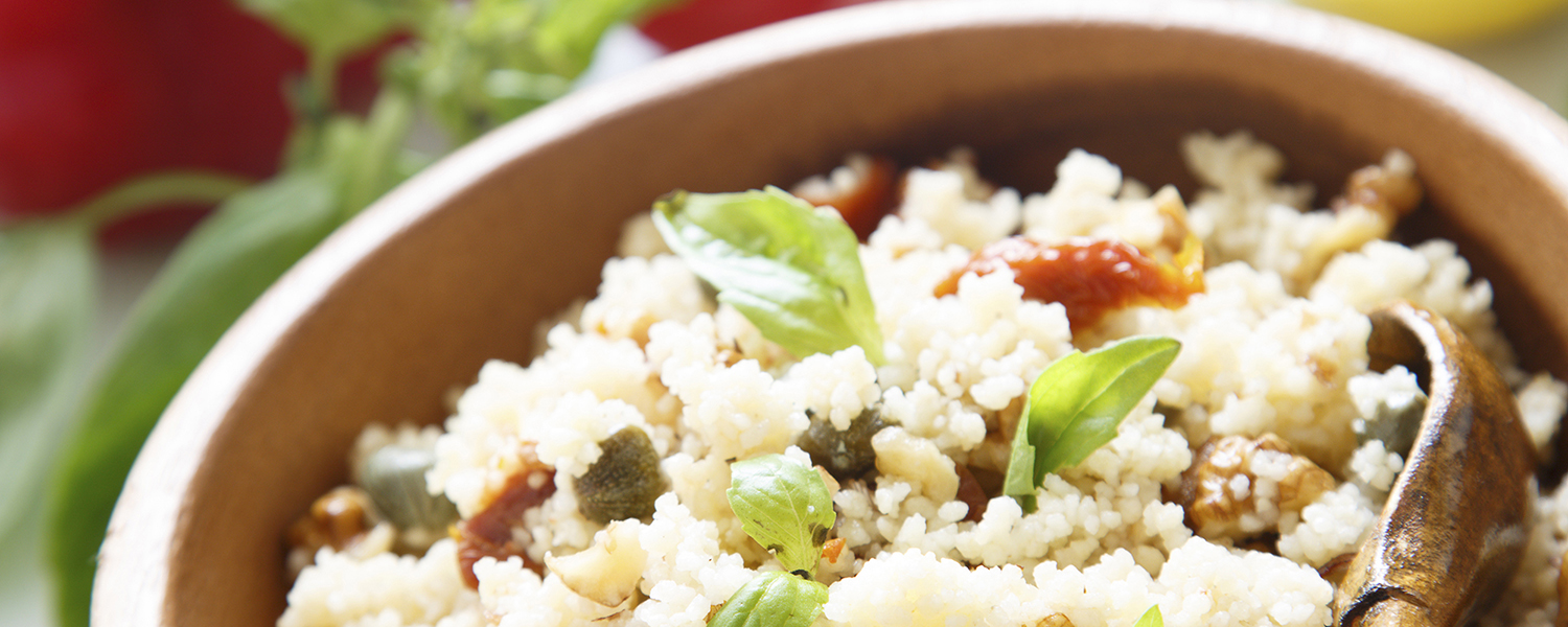 This creative couscous recipe combines hearty, whole wheat couscous with an infusion of Mediterranean flavors to create a healthy base for just about any entrée your heart desires. It’s a celebration of flavors and textures!
