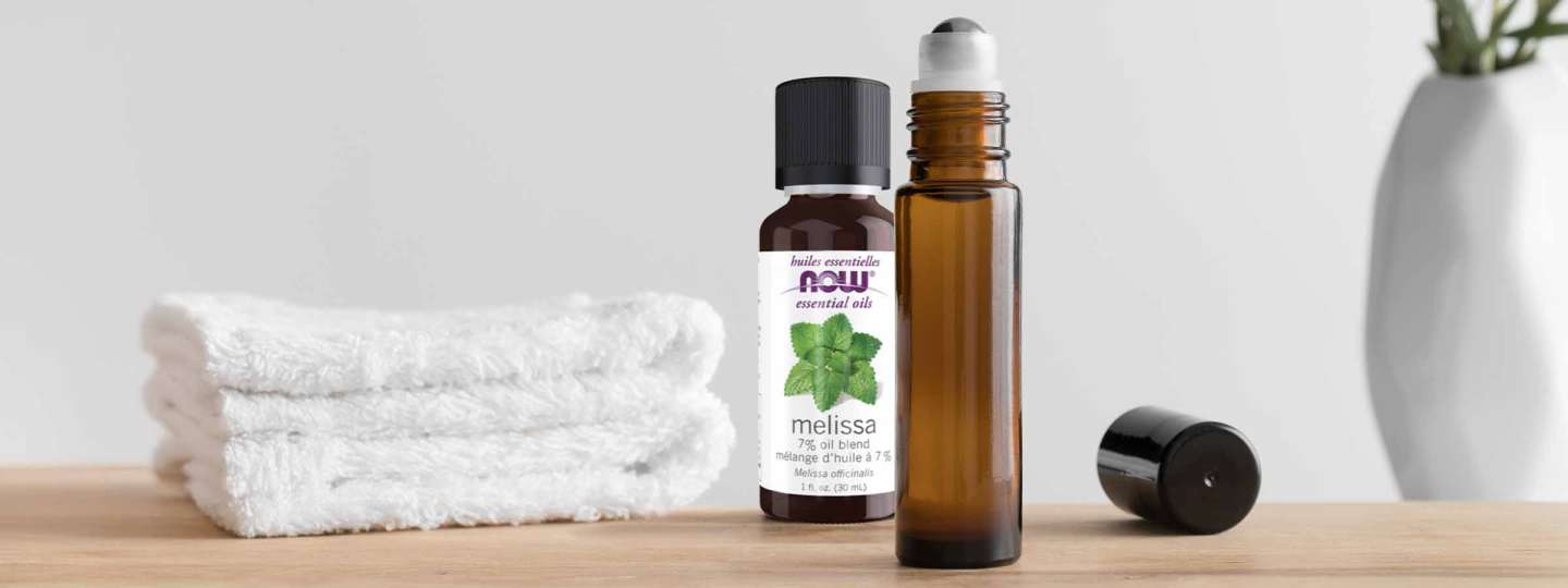Combine essential oils into a 10 mL glass roll-on bottle. Fill the remainder of the bottle with a choice of carrier oil. Shake well before use.