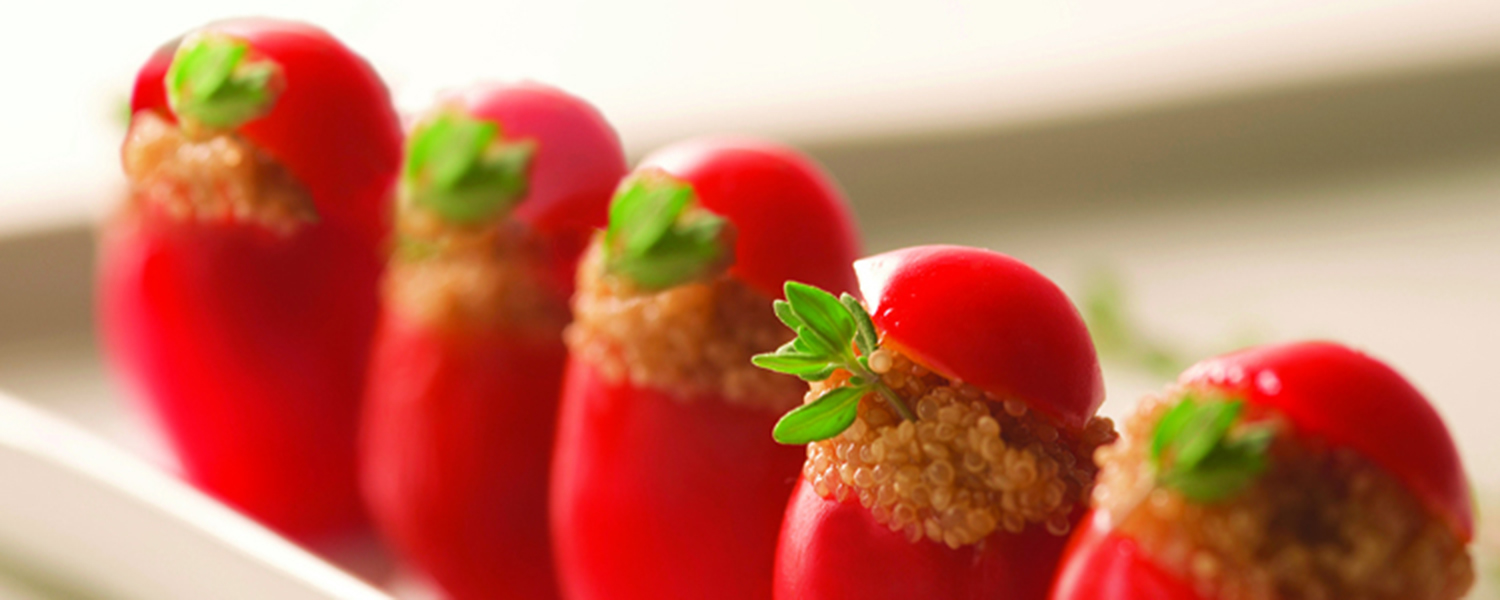 Your next dinner party will be off to a great start with this healthy and satisfying appetizer. We’re hollowing out ripe cherry tomatoes and stuffing them with hearty ancient grain amaranth and fresh tarragon, with a bit of olive oil, salt and vegetable stock to get the flavor just right.