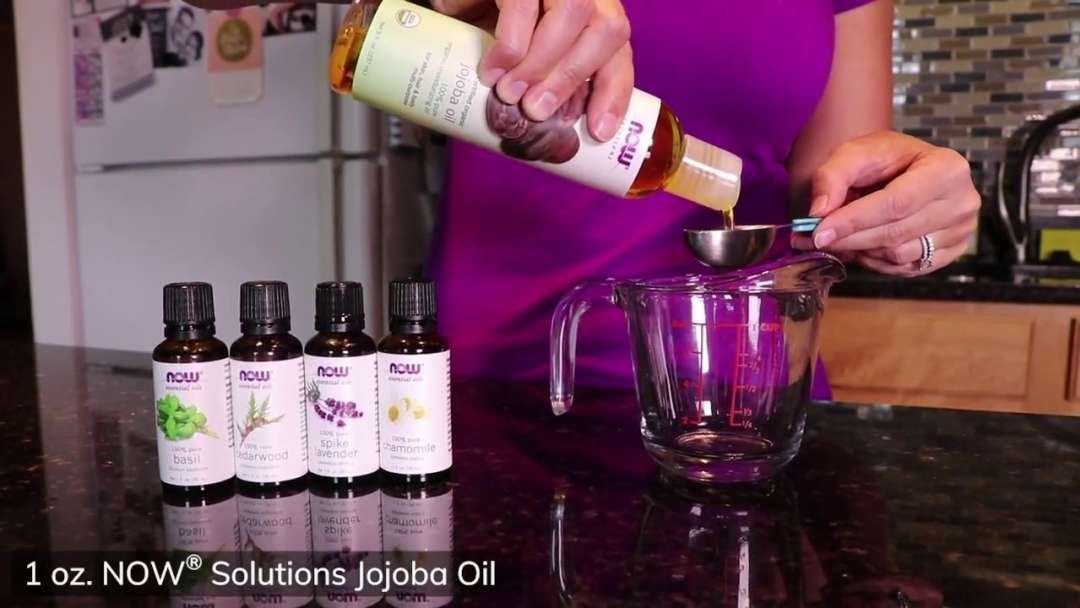 - In your clean, empty spray bottle, add in NOW® Solutions Jojoba Oil or the carrier oil of your choice halfway.