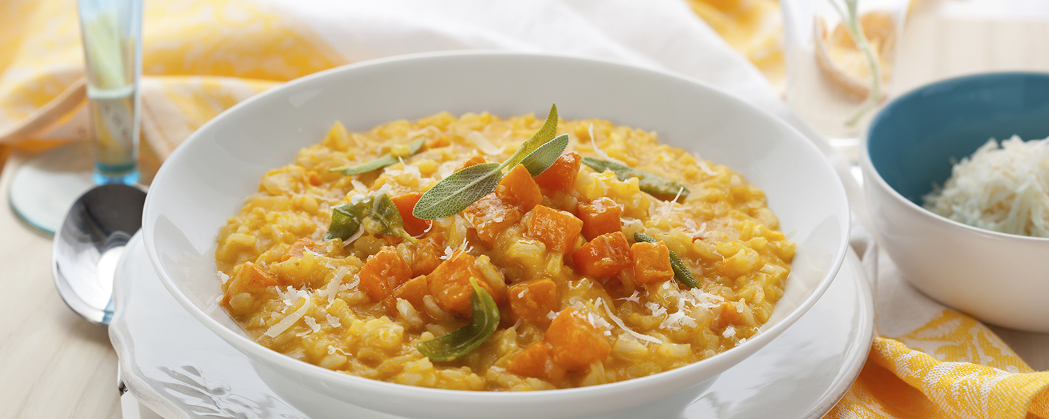 This dish is a healthy take on classic risotto, a northern Italian dish beloved around the world for its flavor and versatility. We’re using tasty, hearty quinoa instead of rice and bringing the comfort with pumpkin, rosemary, nutmeg, vanilla, cloves and more to create a dish you’ll want to take your time with and truly savor.