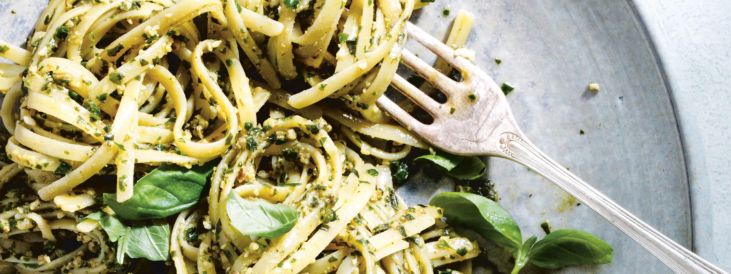 - Cook the pasta according to the package instructions, drain and dress with pesto. To serve, plate the pasta and enjoy!