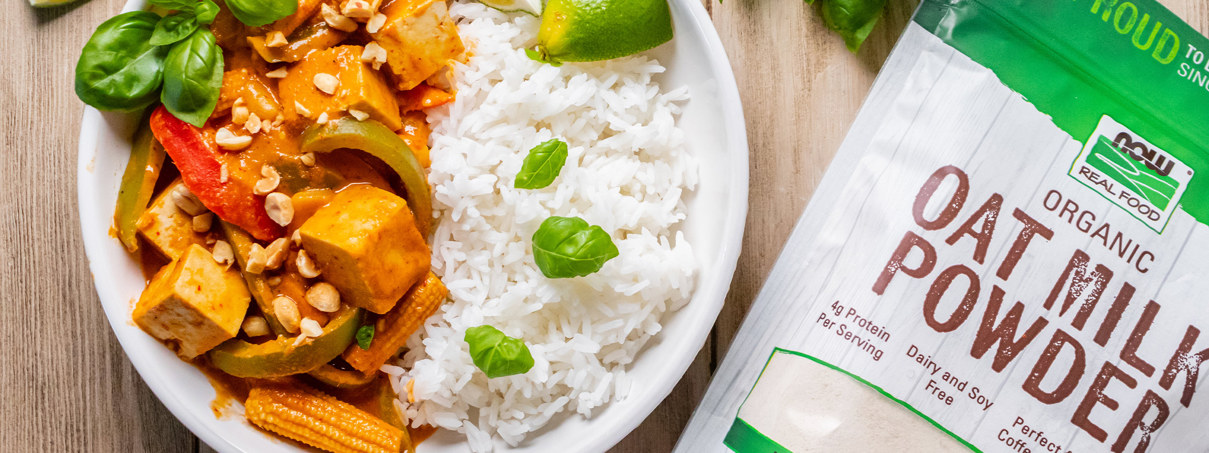 Tofu peanut curry is a fun, flavorful pick for a quick weeknight meal. This tasty recipe is perfect for people looking for a savory and satisfying meal that is also healthy! Tofu is a great alternative source of protein, and our Organic Oat Milk Powder adds a rich and creamy texture. This pleasing curry is also packed with nutrients, thanks to the vegetables and spices.