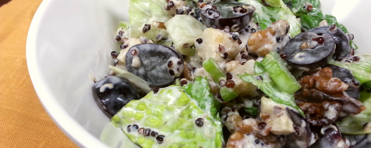 We’re taking the classic Waldorf salad and adding our own healthy twist with the addition of tri-color quinoa, organic walnuts, Romaine hearts instead of lettuce, and our own NOW® Mayonnaise. The Waldorf salad is a cool and crispy salad that typically features grapes, apples, walnuts, and celery tossed or dressed in mayonnaise and served on lettuce. It’s great as both a side salad and a light meal.