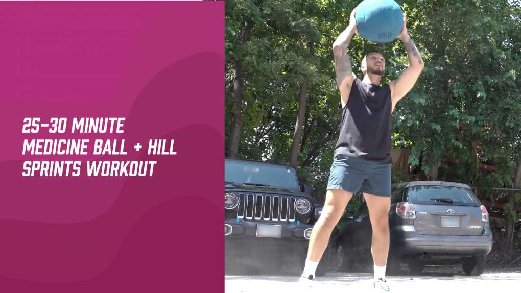 Improve speed and build strength in NOW® Ambassador + Performance Coach Carmen Del Mastro's 25-30 minute dynamic medicine ball and hill sprints workout.