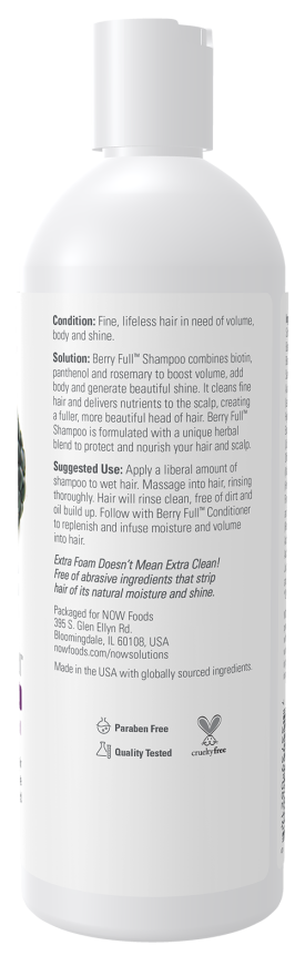 Solution: Berry Full™ Shampoo combines biotin, panthenol and rosemary to boost volume, add body and generate beautiful shine. It cleans fine hair and delivers nutrients to the scalp, creating a fuller, more beautiful head of hair. Berry Full™ Shampoo is formulated with a unique herbal blend to protect and nourish your hair and scalp.