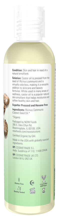 Solution: Castor oil is pressed from the seed of Ricinus communis and is virtually odorless, making it a versatile addition to skincare and beauty formulas. While used in many areas of wellness, castor oil is a popular natural skin emollient that helps moisturize and soften healthy skin and hair.