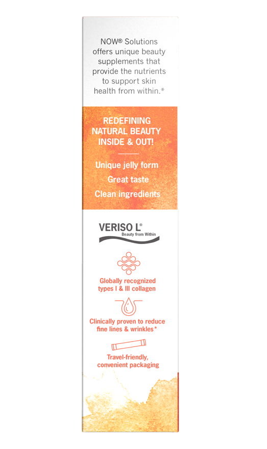 Collagen is a major component of the human body, accounting for about 30% of our total body protein, and is crucial for skin, hair and nail health.* NOW® Solutions Collagen Jelly features VERISOL® Bioactive Collagen Peptides, which have been optimized to maximize collagen production.* Clinical studies demonstrate that VERISOL®, when taken for at least 4 weeks, can positively influence skin elasticity, resulting in the reduction of the prominence of fine lines and wrinkles.* Other studies show that VERISOL® may also help to maintain strong hair and nails when taken for at least 6 months.*