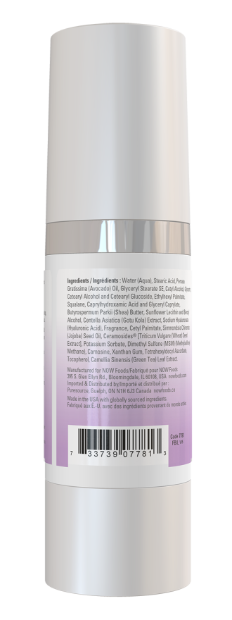 Ingredients: Water (Aqua), Stearic Acid, Persea Gratissima (Avocado) Oil, Glyceryl Stearate SE, Cetyl Alcohol, Glycerin, Cetearyl Alcohol and Cetearyl Glucoside, Ethylhexyl Palmitate, Squalane, Caprylhydroxamic Acid and Glyceryl Caprylate, Butyrospermum Parkii (Shea) Butter, Sunflower Lecithin and Benzyl Alcohol, Centella Asiatica (Gotu Kola) Extract, Sodium Hyaluronate (Hyaluronic Acid), Fragrance, Cetyl Palmitate, Simmondsia Chinensis (Jojoba) Seed Oil, Ceramosides® [Triticum Vulgare (Wheat) Seed Extract], Potassium Sorbate, Dimethyl Sulfone (MSM) (Methylsulfonyl Methane), Carnosine, Xanthan Gum, Tetrahexyldecyl Ascorbate, Tocopherol, Camellia Sinensis (Green Tea) Leaf Extract.