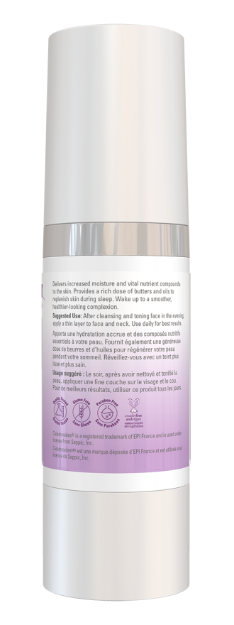 Delivers increased moisture and vital nutrient compounds to the skin. Provides a rich dose of butters and oils to replenish skin during sleep. Wake up to a smoother, healthier-looking complexion.