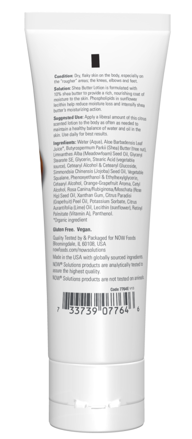 Solution: Shea Butter Lotion is formulated with 10% shea butter to provide a rich, nourishing coat of moisture to the skin. Phospholipids in sunflower lecithin help reduce moisture loss and intensify shea butter’s natural moisturizing action.