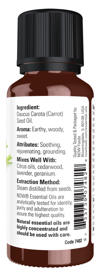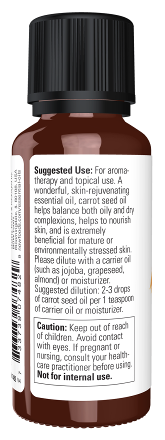 For aromatherapy and topical use. A wonderful, skin-rejuvenating essential oil, carrot seed oil helps balance both oily and dry complexions, helps to nourish skin, and is extremely beneficial for mature or environmentally stressed skin. Please dilute with a carrier oil (such as jojoba, grapeseed, almond) or moisturizer. Suggested dilution: 2-3 drops of carrot seed oil per 1 teaspoon of carrier oil or moisturizer.