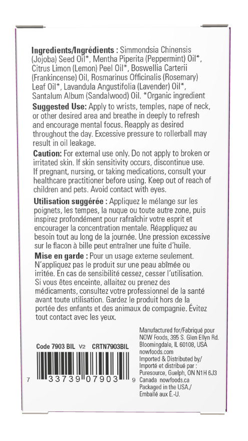 Apply to wrists, temple, nape of neck, or other desired area and breathe in deeply to refresh and encourage mental focus. Reapply as desired throughout the day. Excessive pressure to rollerball may result in oil leakage.