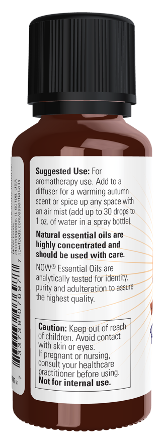 For aromatherapy use. Add to a diffuser for a warming autumn scent or spice up any space with an air mist (add up to 30 drops to 1 oz. of water in a spray bottle).