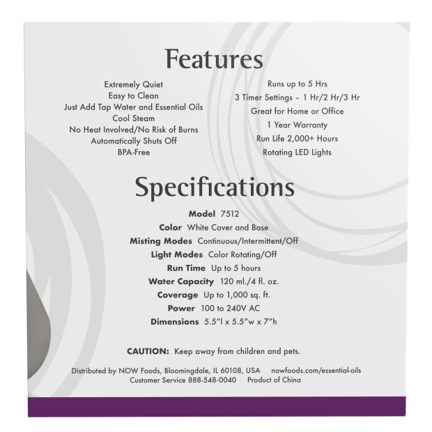 NOW® Solutions Ultrasonic Oil Diffuser unites scientific innovation with contemporary design to create an essential oil diffuser that's the perfect complement to your home or office. This attractive diffuser is BPA-free and utilizes high-frequency ultrasonic electrical vibrations to create an ultra-fine aromatherapy mist. This diffusion method doesn't utilize heat, which maintains essential oil integrity and holistic properties. It's perfect for daily and year-round use and is a healthy alternative to synthetic room fresheners and scented candles.
