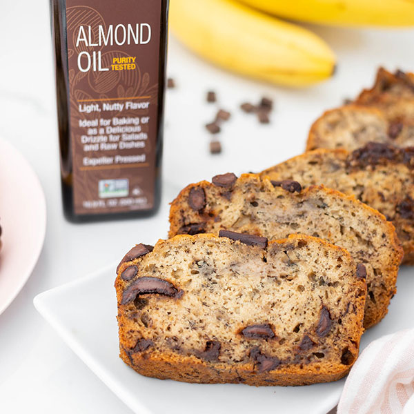 With its light, nutty flavor almond oil is ideal for baked goods such as muffins, cookies, and breads (smoke point is approximately 425º F), but it really shines as a finishing drizzle for salads and other raw dishes.