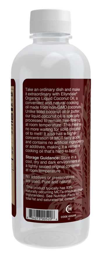 Take an ordinary dish and make it extraordinary with Ellyndale® Organics Liquid Coconut Oil, a convenient and natural cooking oil made from non-GMO coconuts. Unlike solid coconut oil or butter, our liquid coconut oil is specially processed to remain free-flowing at room temperature. This means no more waiting for solid coconut oil to melt! It also has a higher concentration of MCT fatty acids and contains no artificial ingredients or additives, making it a versatile cooking oil that’s hard to beat.