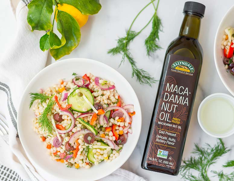 Ellyndale® Naturals premium-grade Macadamia Nut Oil is the perfect oil for your favorite recipes. In addition to its rich, nutty flavor and buttery-smooth texture, macadamia nut oil has a high smoke point (approximately 400° F) and a high heat tolerance, making it an ideal oil for frying. With up to 79% monounsaturated fatty acids and very little polyunsaturated fat, macadamia nut oil is very stable, boasting an unrefrigerated shelf life of up to two years.
