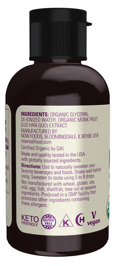 Ingredients: Organic Glycerin, De-Ionized Water, Organic Monk Fruit (Luo Han Guo) Extract.