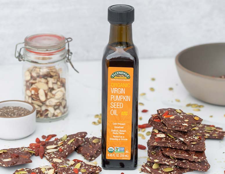Ellyndale® Organics Virgin Pumpkin Seed Oil is a delicious, gourmet oil with a nutty, robust flavor that’s an ideal drizzle for vegetables, salads and potatoes and makes an excellent dip for bread. Pumpkin Seed Oil is abundant in essential fatty acids and other important nutrients.