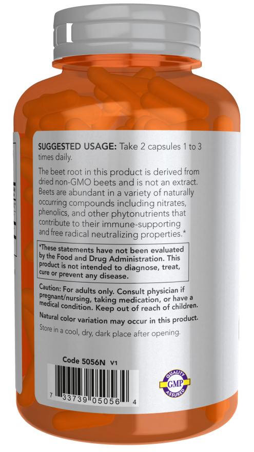 The beet root in this product is derived from dried non-GMO beets and is not an extract. Beets are abundant in a variety of naturally occurring compounds including nitrates, phenolics, and other phytonutrients that contribute to their immune-supporting and free radical neutralizing properties.*