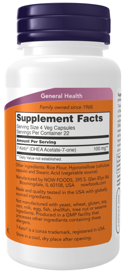 7-Keto® DHEA is a naturally occurring metabolite of Dehydroepiandrosterone (DHEA).* 7-Keto® DHEA is involved in many biological functions including cellular production of heat (thermogenesis).* DHEA production and 7-Keto® DHEA, as well as metabolic rate, are known to naturally decrease with age.* In clinical studies, 7-KETO®, a unique ingredient, has been shown to assist in the maintenance of a healthy body weight along with a proper diet and exercise regimen.*
