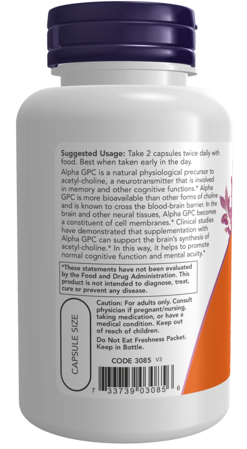 Alpha GPC is a physiological precursor to acetyl-choline, a neurotransmitter that is involved in memory and other cognitive functions.* Alpha GPC is more bioavailable than other forms of choline and is known to cross the blood brain barrier.* In the brain and other neural tissues, Alpha GPC becomes a constituent of cell membranes, enhancing nerve cell communication and brain function.*