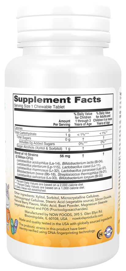NOW® BerryDophilus™ provides 2 billion CFU from a combination of 10 clinically validated probiotic bacterial strains designed to support gastrointestinal health and healthy immune system function.* Healthy intestinal flora also help to create a favorable environment for the absorption of nutrients.* BerryDophilus™ can be used by both adults and children. Sweetened with xylitol, BerryDophilus™ won't harm teeth and it tastes great.