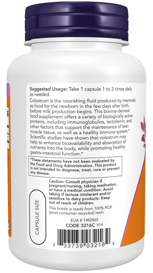 Colostrum is the nourishing fluid produced by mammals as food for the newborn in the few days after birth, before milk production begins. This bovine-derived food supplement offers a variety of biologically active proteins, including immunoglobulins, lactoferrin, and other factors that support the maintenance of lean muscle tissue, as well as a healthy immune system.* Scientific studies have shown that colostrum may help to enhance bioavailability and absorption of nutrients into the body, while promoting healthy gastro-intestinal function.*